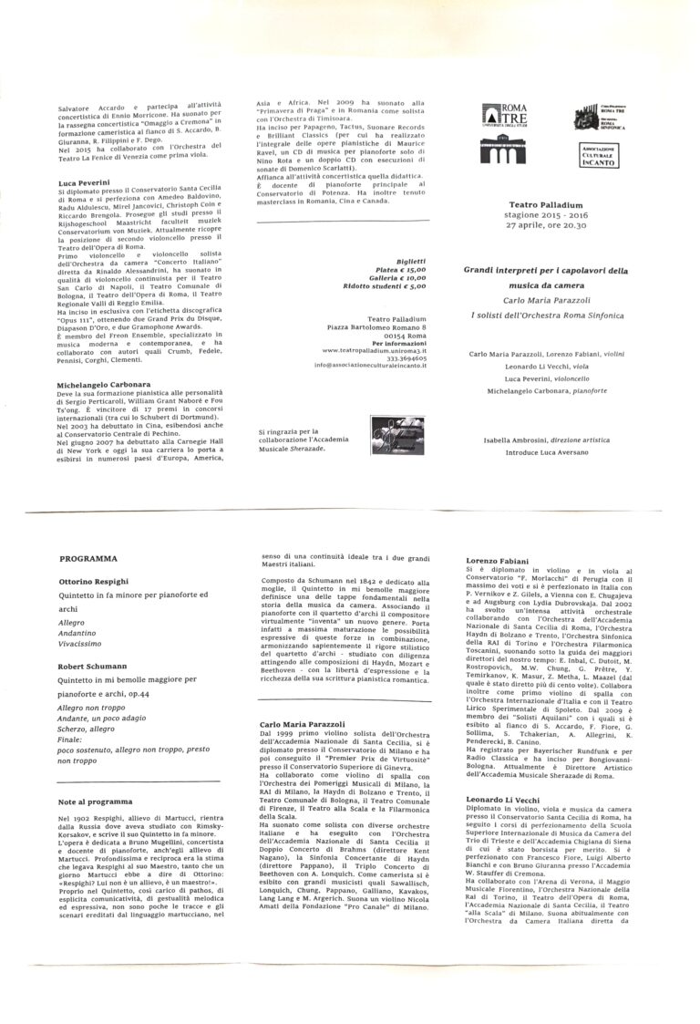 Grandi interpreti per i capolavori della musica da camera Carla Maria Parazzoli...