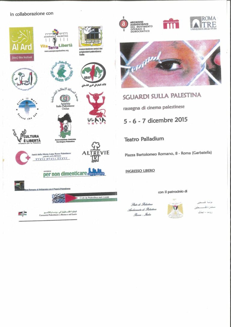 SGUARDI SULLA PALESTINA rassegna di cinema palestinese 5-6-7 dicembre 2015...